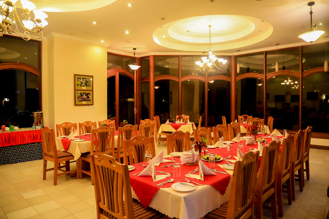 The Meru restaurant overflows into well paved gardens for enjoyable evening dinners for desiring groups which overflows into the green lush tropical gardens where you will enjoy very cool weather and quiet winds.