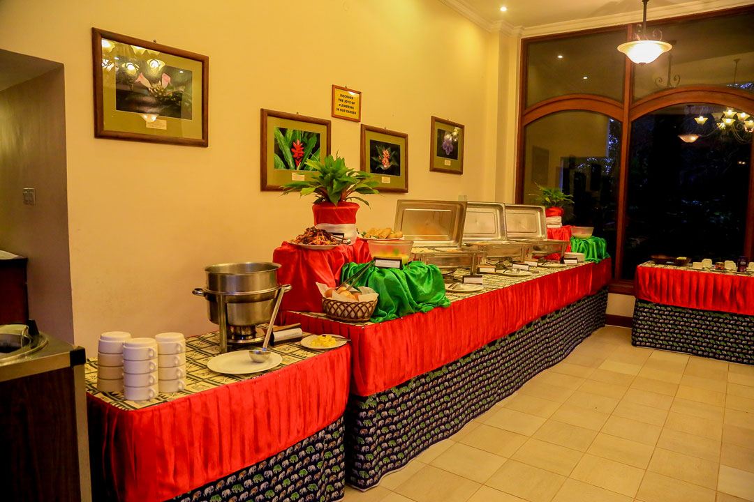 The Meru restaurant overflows into well paved gardens for enjoyable evening dinners for desiring groups which overflows into the green lush tropical gardens where you will enjoy very cool weather and quiet winds.